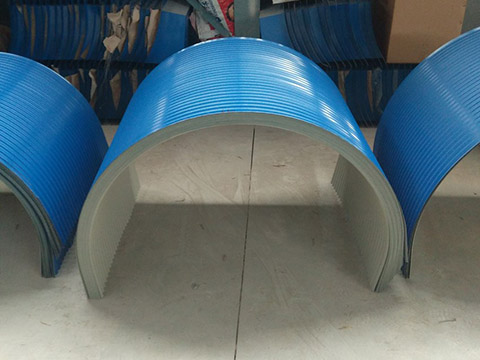 【易于制造:】對冷軋鋼板或鍍鋅鋼板,進行外表化學處理后涂敷(輥涂)或敷復合有機薄膜(PVC膜等),再經烘烤固化而制成的弧形罩面。