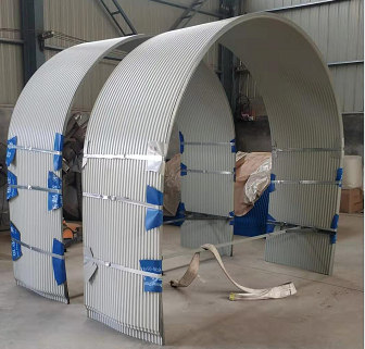 皮帶走廊罩是按客戶的要求生產制作的。它主要是里面空間大,人可以在里面直立行走,在對輸送機日常巡檢而不受外面風吹、日曬及雨淋的影響。